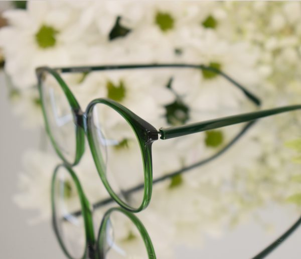 Te damskie okulary o owalnym kształcie to model, który zachwyca subtelną elegancją i naturalnym charakterem. Front oprawek wykonany jest z tworzywa w głębokim, zielonym kolorze, który pięknie podkreśla spojrzenie i dodaje twarzy świeżości. Zauszniki w dopasowanym odcieniu zieleni tworzą spójną całość, nadając okularom lekkości oraz stylowego, harmonijnego wykończenia.