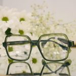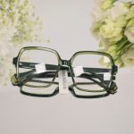 Okulary damskie kwadratowe – transparentne zielone oprawki