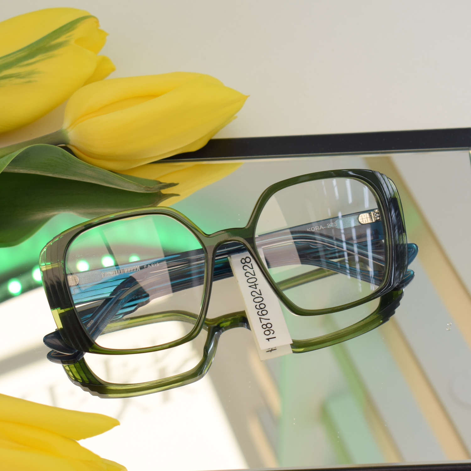 Okulary damskie geometryczne – zielone transparentne oprawki
