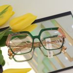 Okulary damskie geometryczne – zielone transparentne oprawki