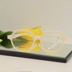 Jasna, kremowa kolorystyka sprawia, że model wygląda świeżo i bardzo elegancko. Transparentne wtopienia nadają oprawkom lekkości, dzięki czemu mimo wyraźnego kształtu okulary nie przytłaczają twarzy i pięknie rozświetlają cerę.