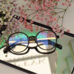Okulary damskie okrągłe – czarne oprawki ze złotym zausznikiem