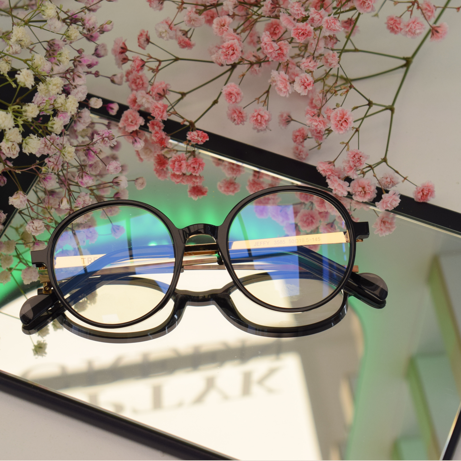 Czarne oprawki należą do najbardziej uniwersalnych wyborów w świecie okularów. Intensywna czerń sprawia, że model wygląda bardzo stylowo i łatwo dopasowuje się zarówno do codziennych, jak i bardziej eleganckich stylizacji. Złoty detal przy zauszniku dodaje całości subtelnej elegancji i lekkości.