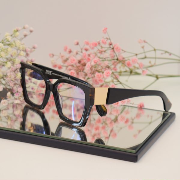 To doskonały wybór dla kobiet, które szukają dużych prostokątnych okularów damskich w klasycznej czerni, łączących ponadczasowy styl z eleganckimi złotymi detalami.