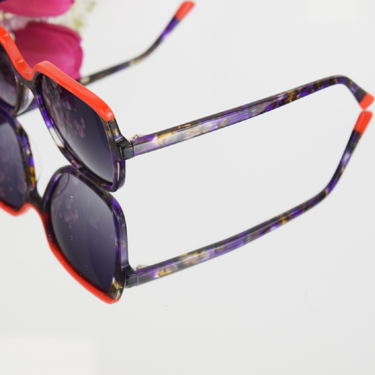 Oprawki wykonane z lekkiego, trwałego tworzywa przyciągają uwagę unikalnym połączeniem kolorówgórna część frontu w intensywnej czerwieni nadaje całości energii i wyrazistości, natomiast dół frontu oraz zauszniki w szylkretowym, fioletowym odcieniu wprowadzają elegancję i subtelną głębię. To harmonijne zestawienie sprawia, że model wyróżnia się na tle klasycznych propozycji, pozostając jednocześnie stylowym i uniwersalnym dodatkiem.